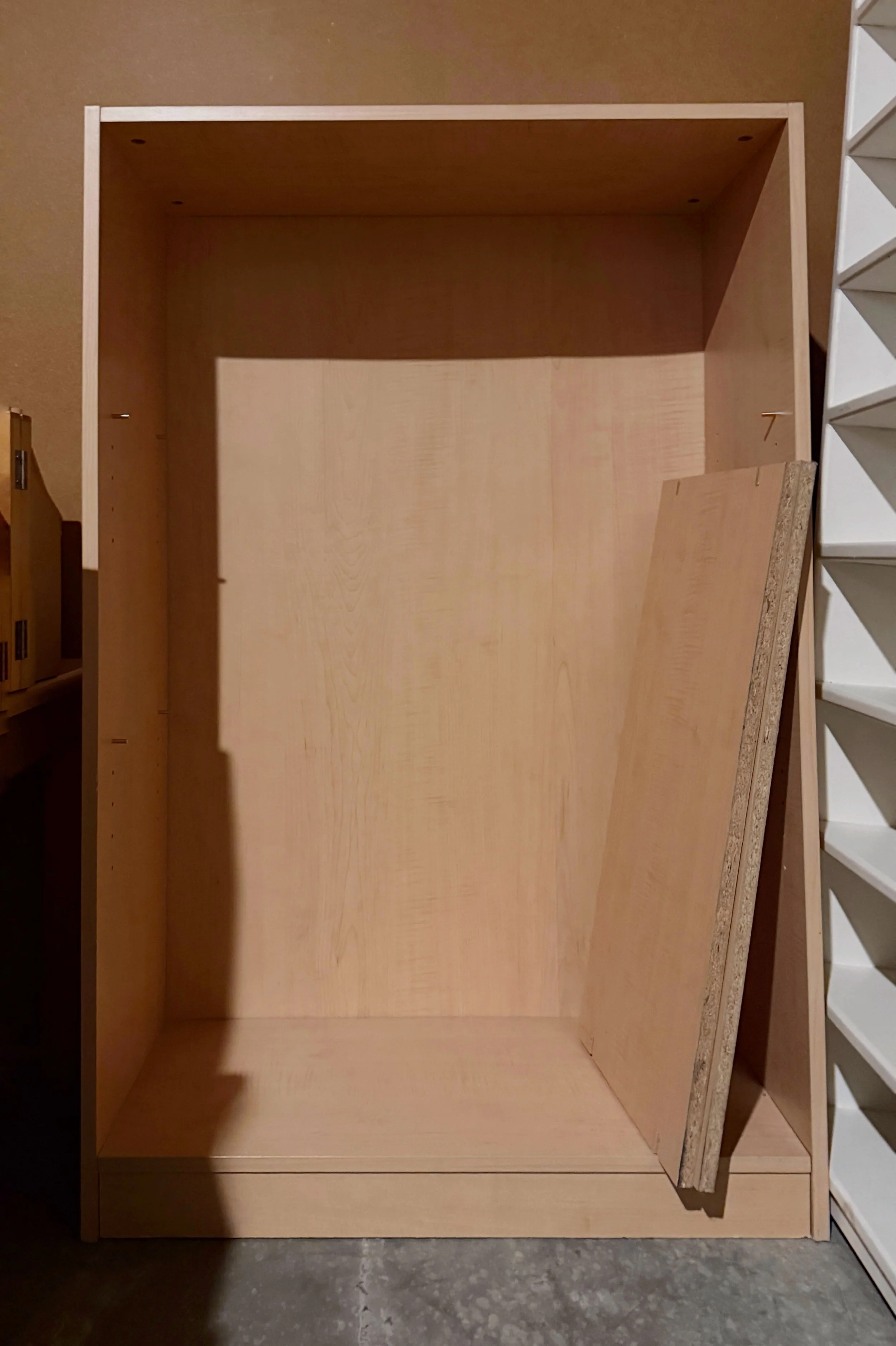 Shelves need to be bolted to the wall for safety; there are a few holes in the backing where bolts were.