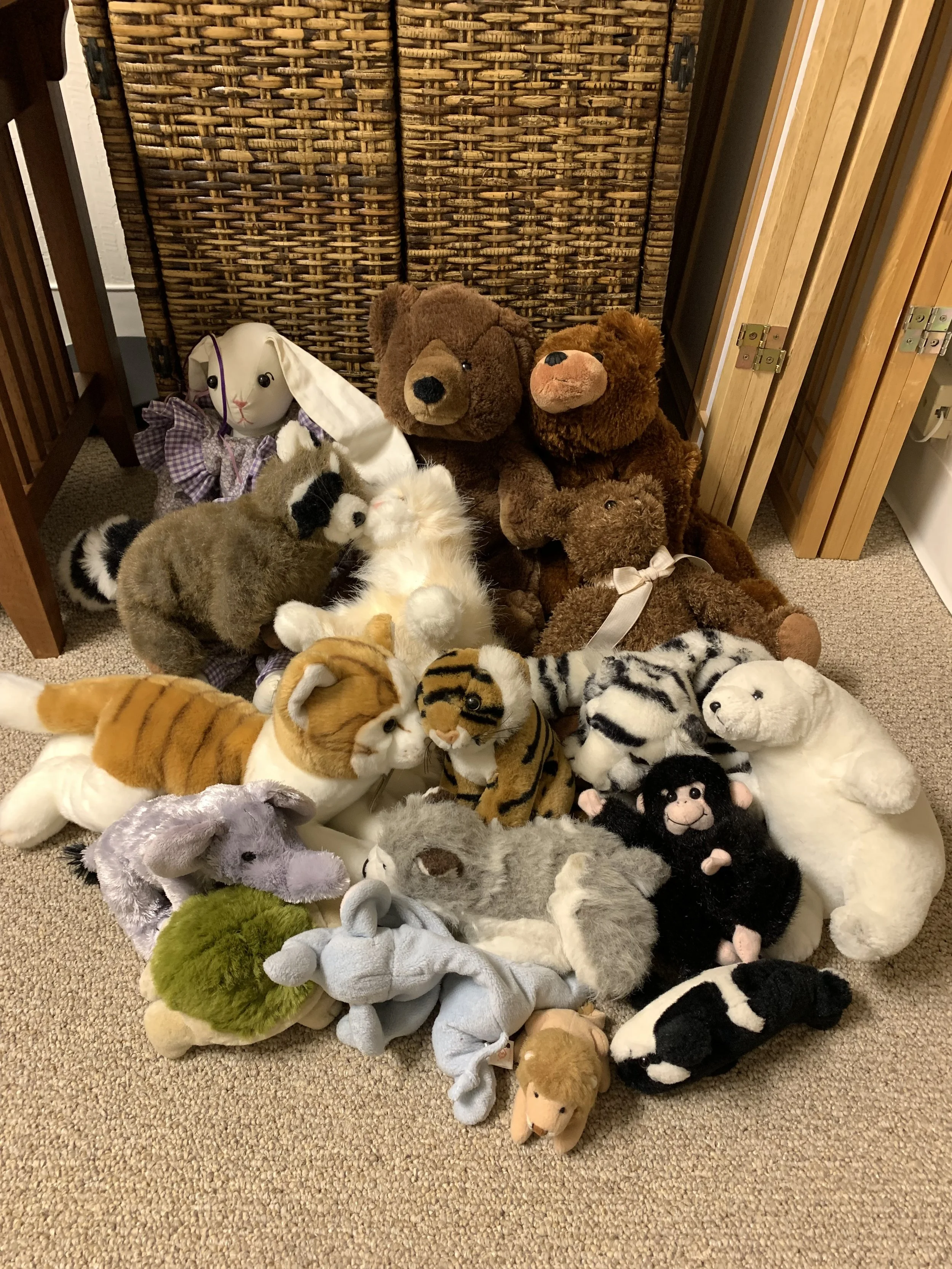 Four large plastic boxes of picture books, specifically chosen because they address childhood stresses, ordinary and otherwise. This is just one of them. Boxes are roughly 17” wide x 13” tall x 13” deep. $100