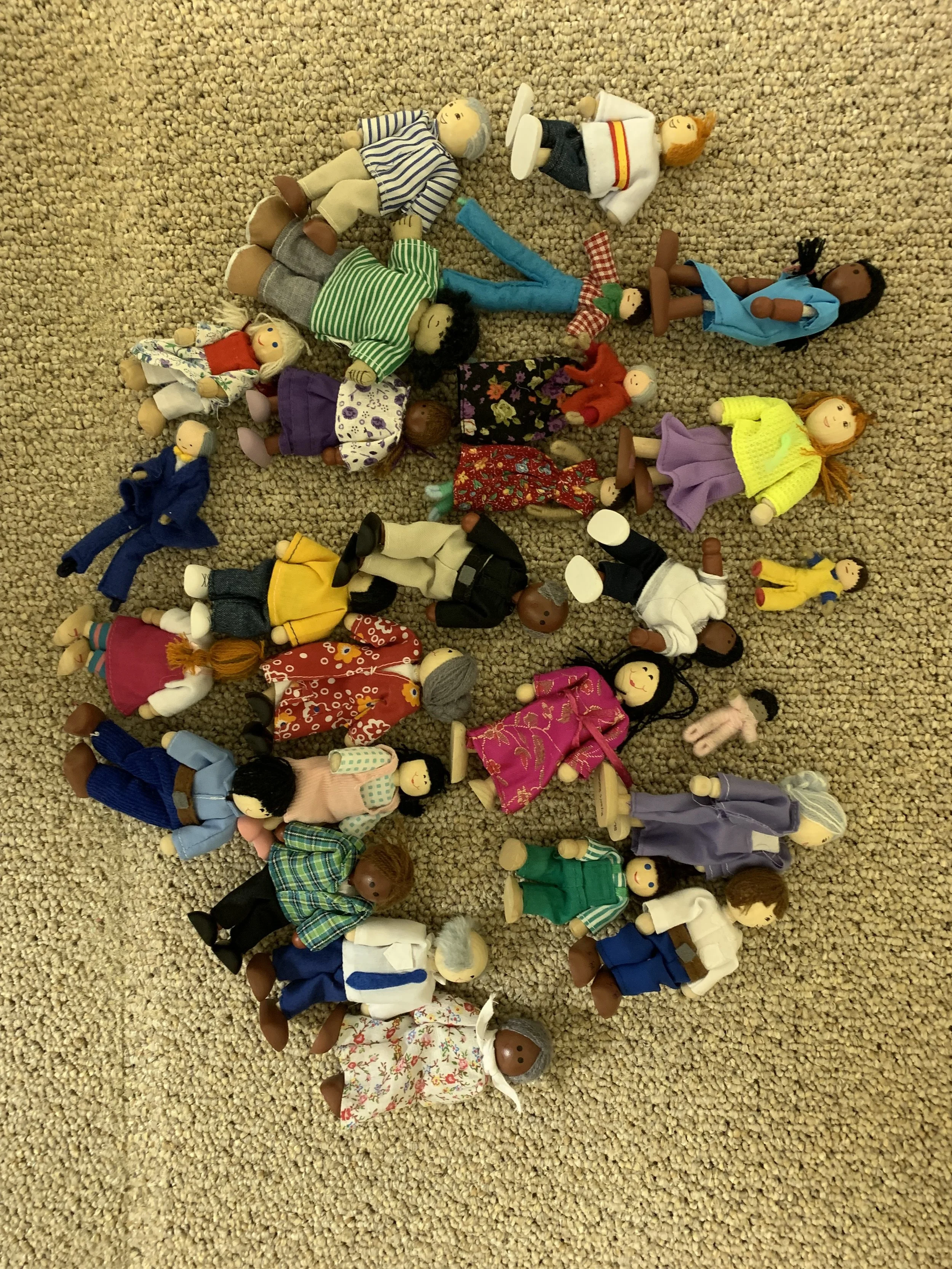 … and lots of multicultural dollhouse people (with a tub for storage), complete set with above dollhouse, $50