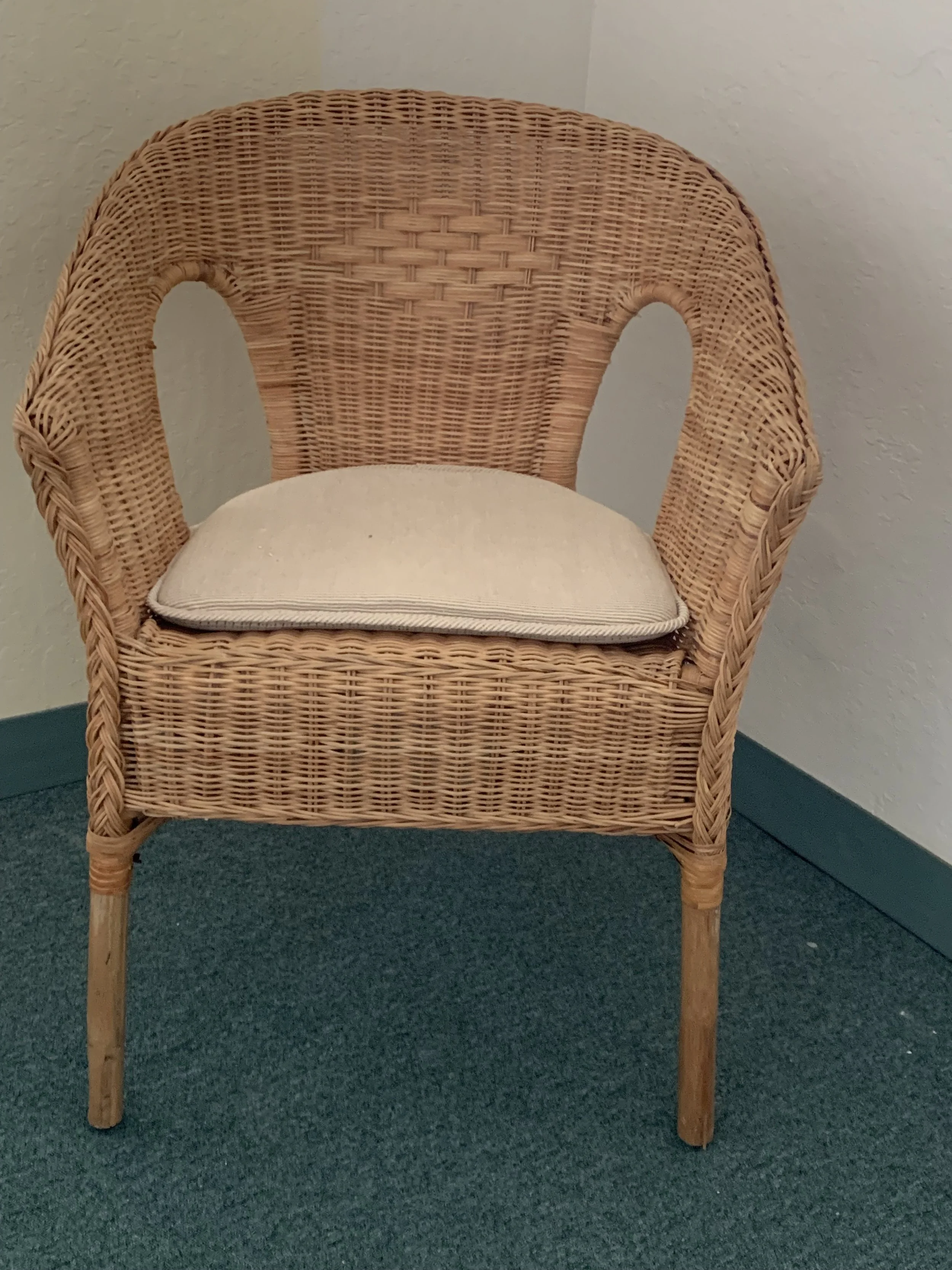 Wicker chair, easy to move, 23”wide, 23” deep, 31” high, $20